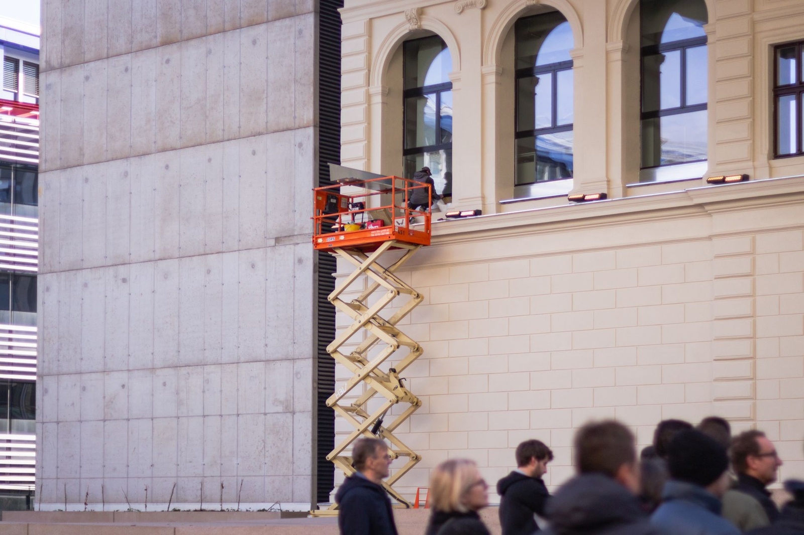Die Sanierung und Erweiterung der Bibliothek wird vor allem durch die Gegensätze zwischen dem historischen Bestandsgebäude (unter Denkmalschutz) und dem Neubau geprägt. Die 125 Jahre alte Fassade wurde wieder sichtbar gemacht. Die Lesebereiche befinden sich in dem auskragenden, gläsernen Kubus, der über dem Platz zu schweben scheint.