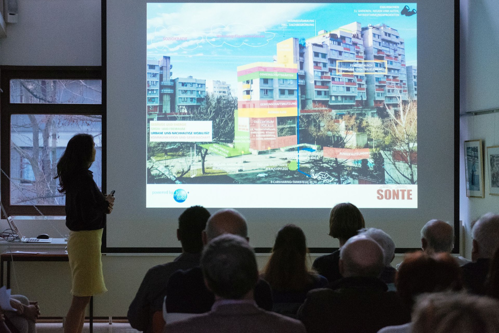 Präsentation & DiskussionMit Februar 2018 endete das Projekt SONTE vorerst. Der vom Projektteam und den Wohnungseigentümerinnen / Wohnungseigentümern sowie der Bewohnerschaft der Terrassenhaussiedlung erarbeitete Modernisierungsleitfaden für die Siedlung wird präsentiert und die Ergebnisse diskutiert.