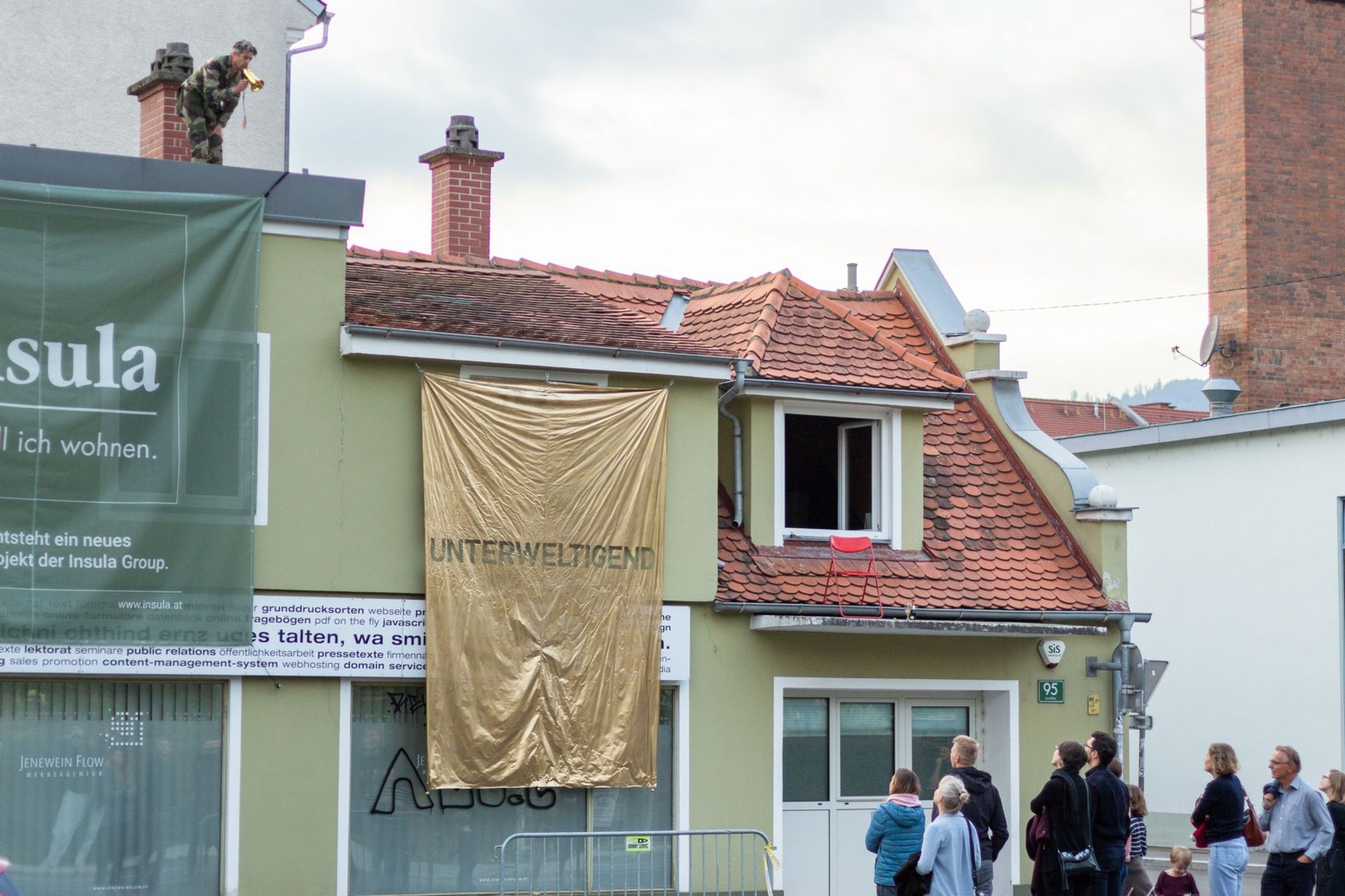 PerformanceDas Haus der Architektur lädt im Rahmen der Ausstellung Verhüllung und Verheißung herzlich zu einem Richtfest mit dem Künstler Sven Borger ein. Bei seiner Performance enthüllt Sven Borger ein unterweltigendes Baustellenplakat an einer Baustelle im Grazer Stadtzentrum (Lendkai 95).