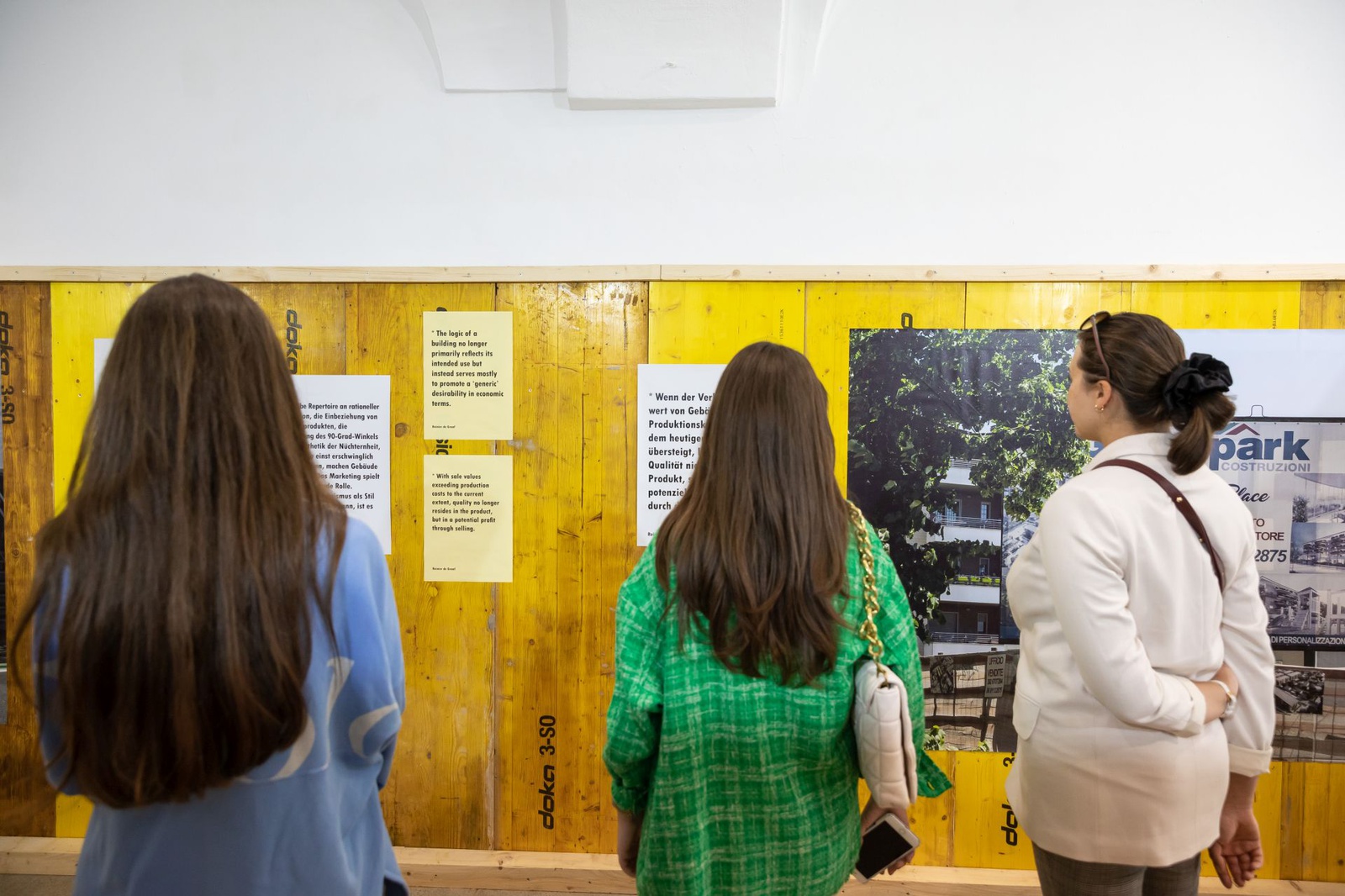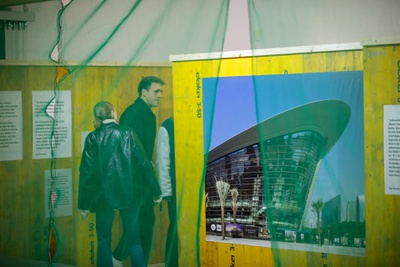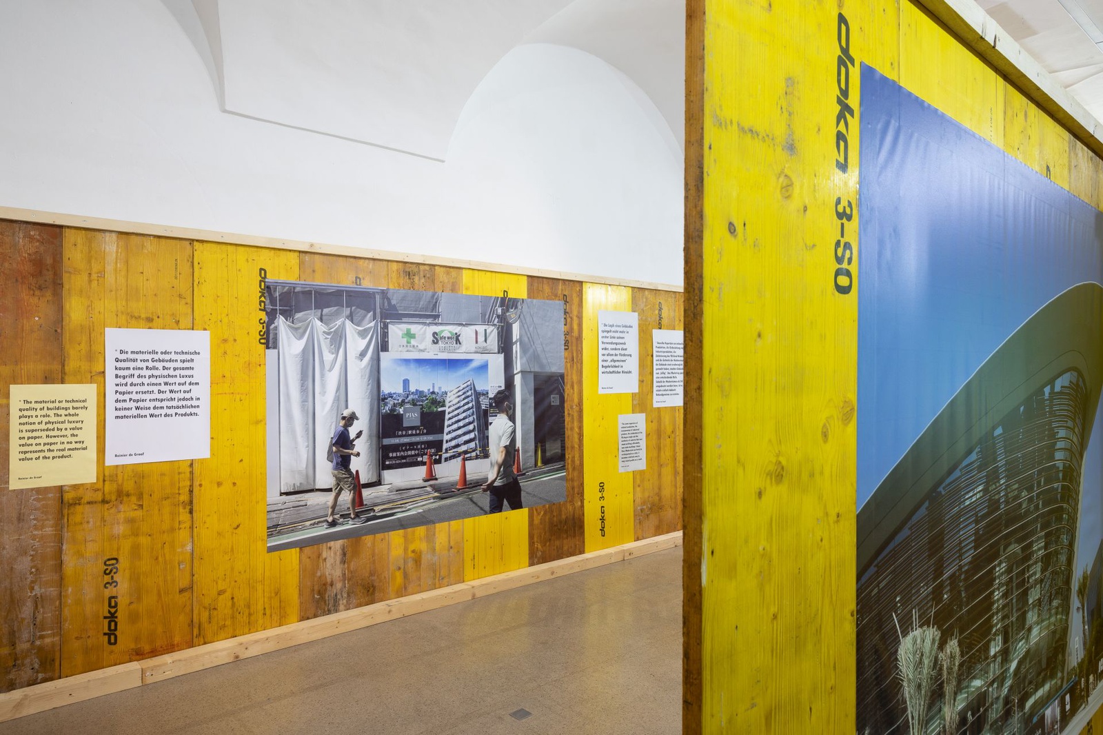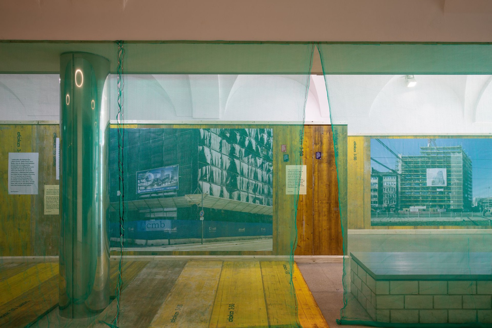 The visual representation of buildings and urban spaces is one of the most important forms of communication in contemporary architecture. In the urban space these visualisations are often used for advertising purposes, decorating scaffolding and construction site fences. The exhibition Veil and Promise investigates the phenomenon of real estate advertising in the public space. Images by photographer Hans Georg Esch of posters from all over the world are juxtaposed with texts by Reinier de Graaf, AMO/OMA, visual analysis by graphic designer Rosa Nussbaum as well as an installation by artist Sven Borger.
