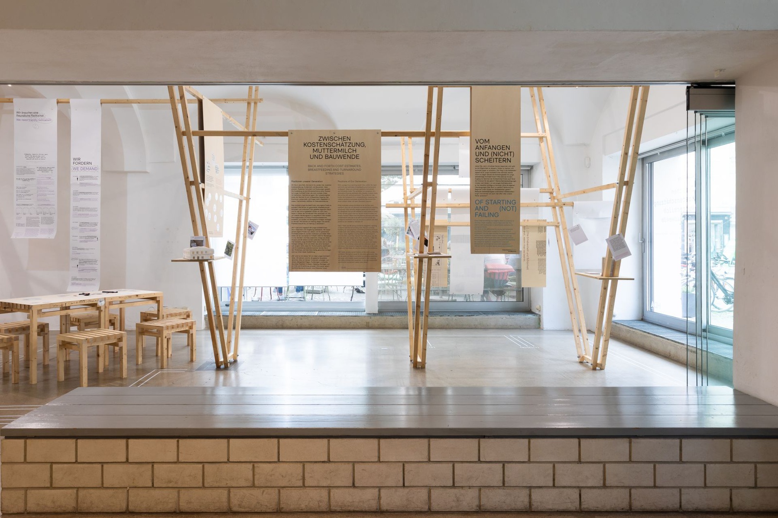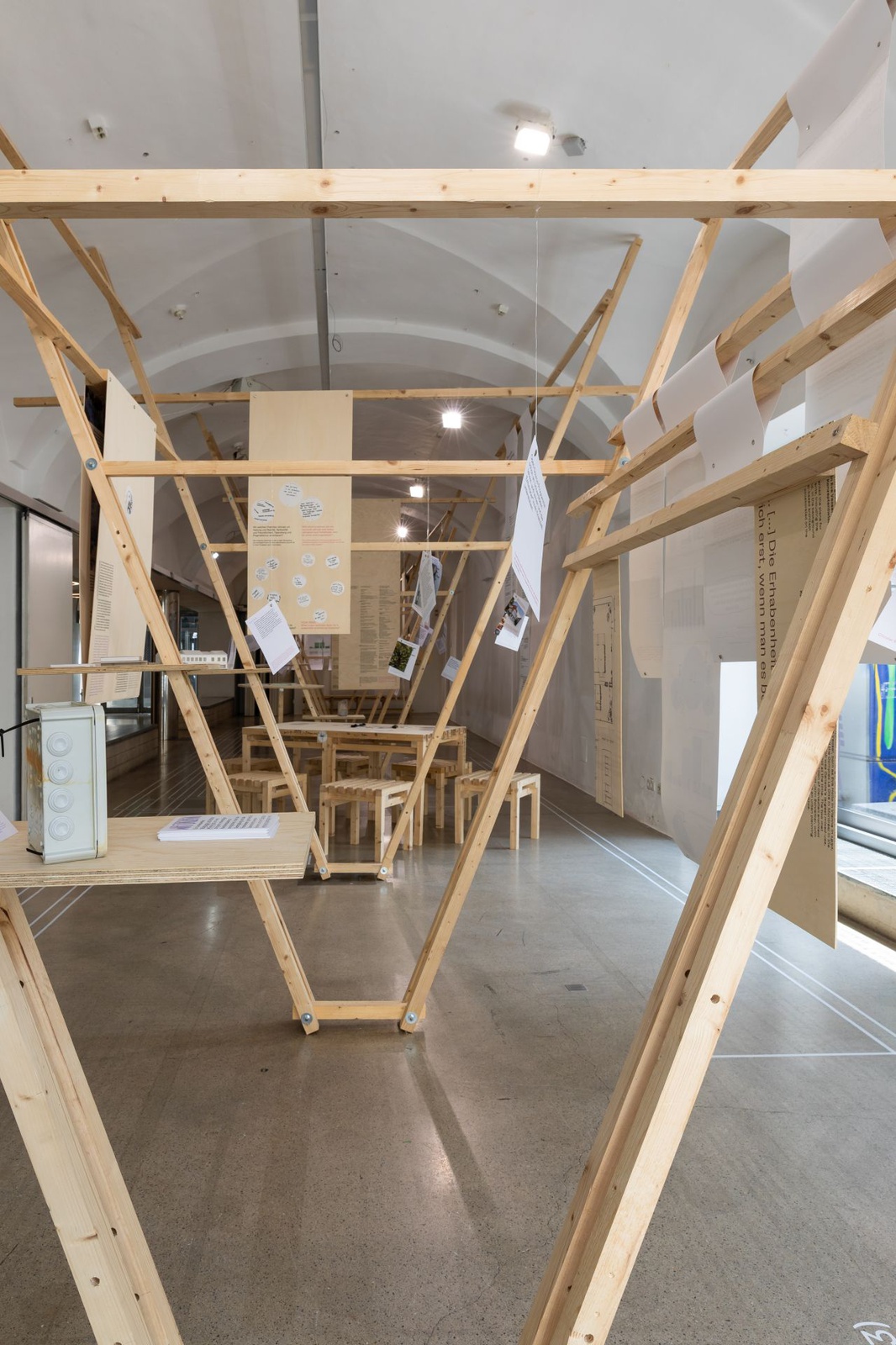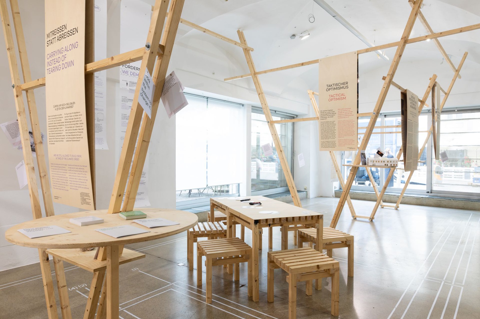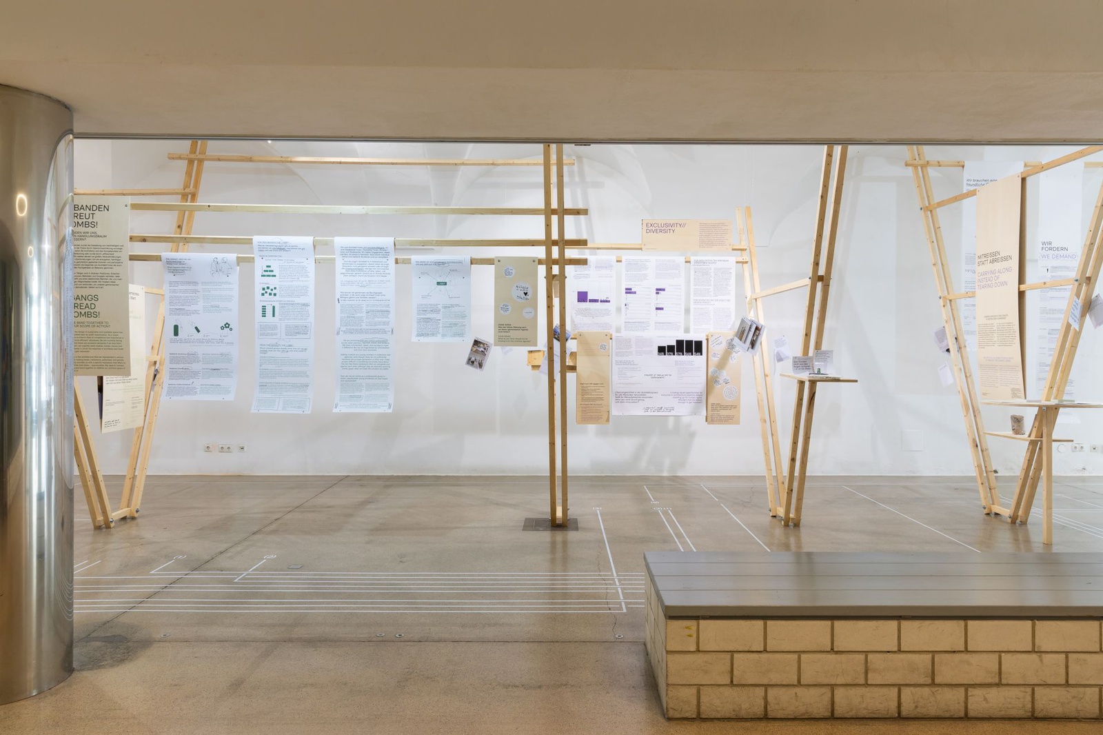AusstellungDie Ausstellung „Zwischen Kostenschätzung, Muttermilch und Bauwende“ versammelt die drängendsten Fragen, Positionen und Forderungen junger Architekt:innen in Österreich. Die Herausforderungen sind groß: die Bauwende aktiv mitgestalten, gerechtere Arbeitsstrukturen schaffen und die eigenen Handlungsspielräume durch veränderte Rahmenbedingungen vergrößern. Gezeigt wird ein kollektiv kuratiertes Mapping, das gemeinsam mit 60 Architekt:innen erarbeitet wurde und den Auftakt zu einer offenen Diskussion bildet. Die Installation lädt zum Austausch ein, stellt Fragen und soll durch Kommentare der Besucher:innen weiter wachsen.
