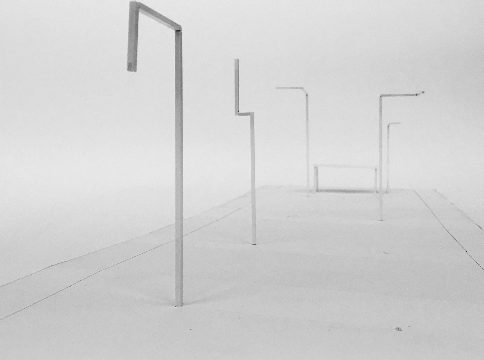 Der Rahmen fungiert in der im HDA realisierten Installation des Medienkünstlers Gerald Moser als architektonisches Element, verschwindet nicht sichtbar hinter Leinwänden und definiert den Blick durch Foto- und Filmapparaturen. Als Frame wird er verändert, gedehnt, verschoben und erweitert. Sein Proportionsverhältnis ist ein technisch ständig umkämpftes Territorium und prägt aktuell unsere Wahrnehmung. Durch Licht akzentuiert die Installation fraktale Strukturen im Raum.